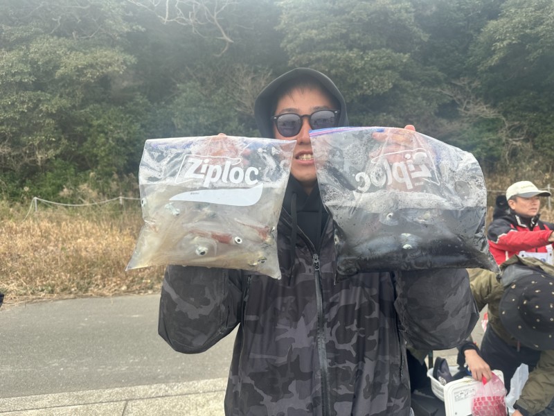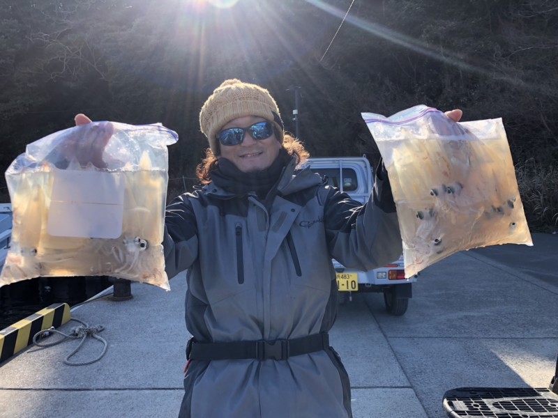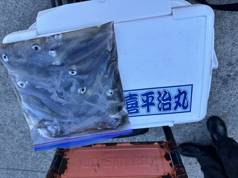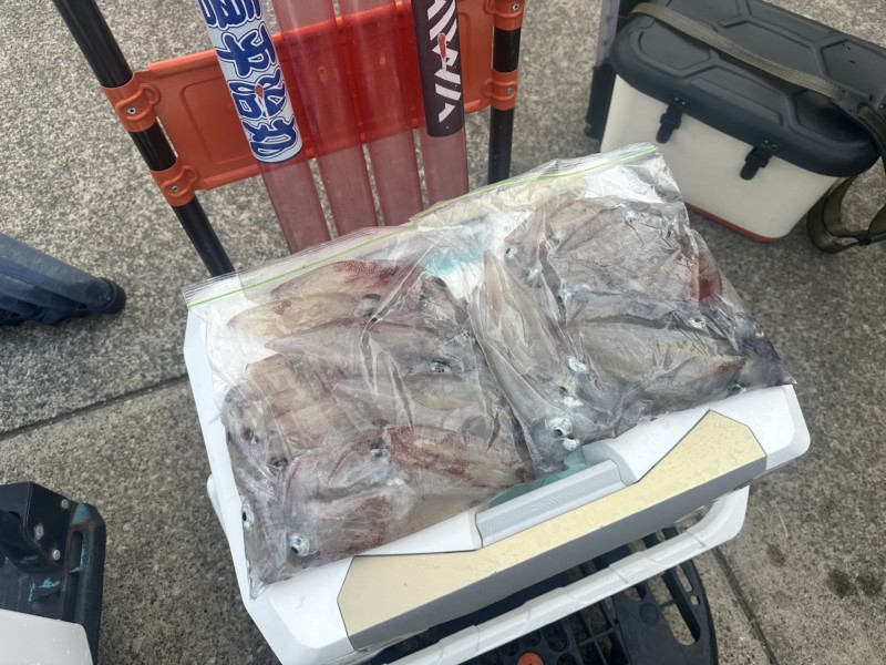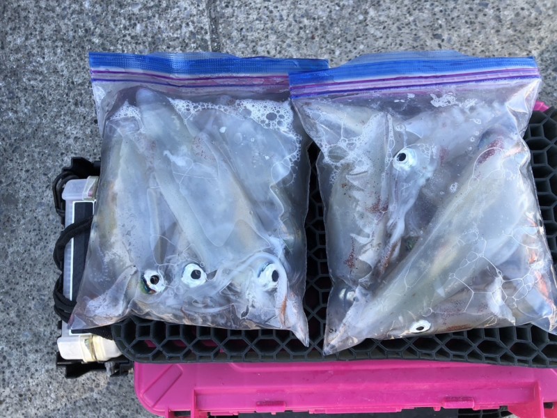 スルメイカとヤリイカの割合半々だったり、スルメイカの方が多かったりと人によっても違ってました。