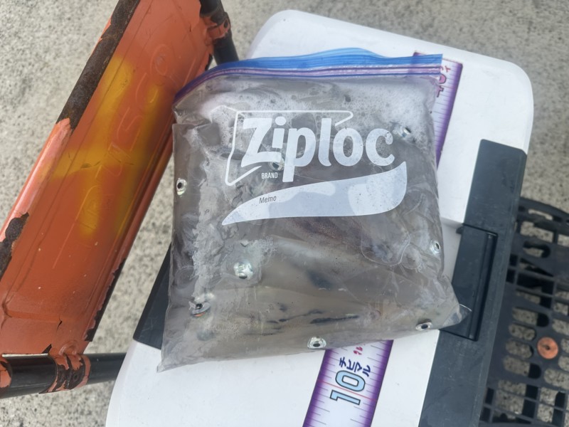スルメイカ混ざりですので、仕掛けは11センチの他に、14センチ、18センチもご用意下さい。