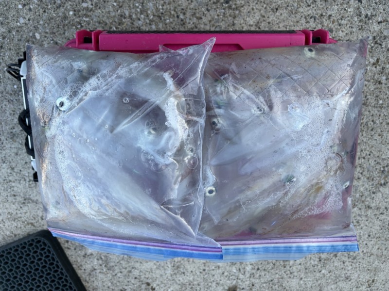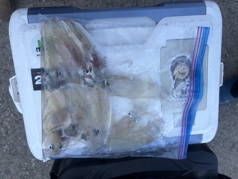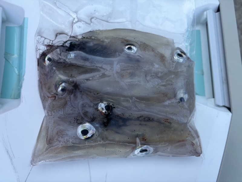 今日はほとんどスルメイカで、ヤリイカは混ざって2〜3匹程度でした。